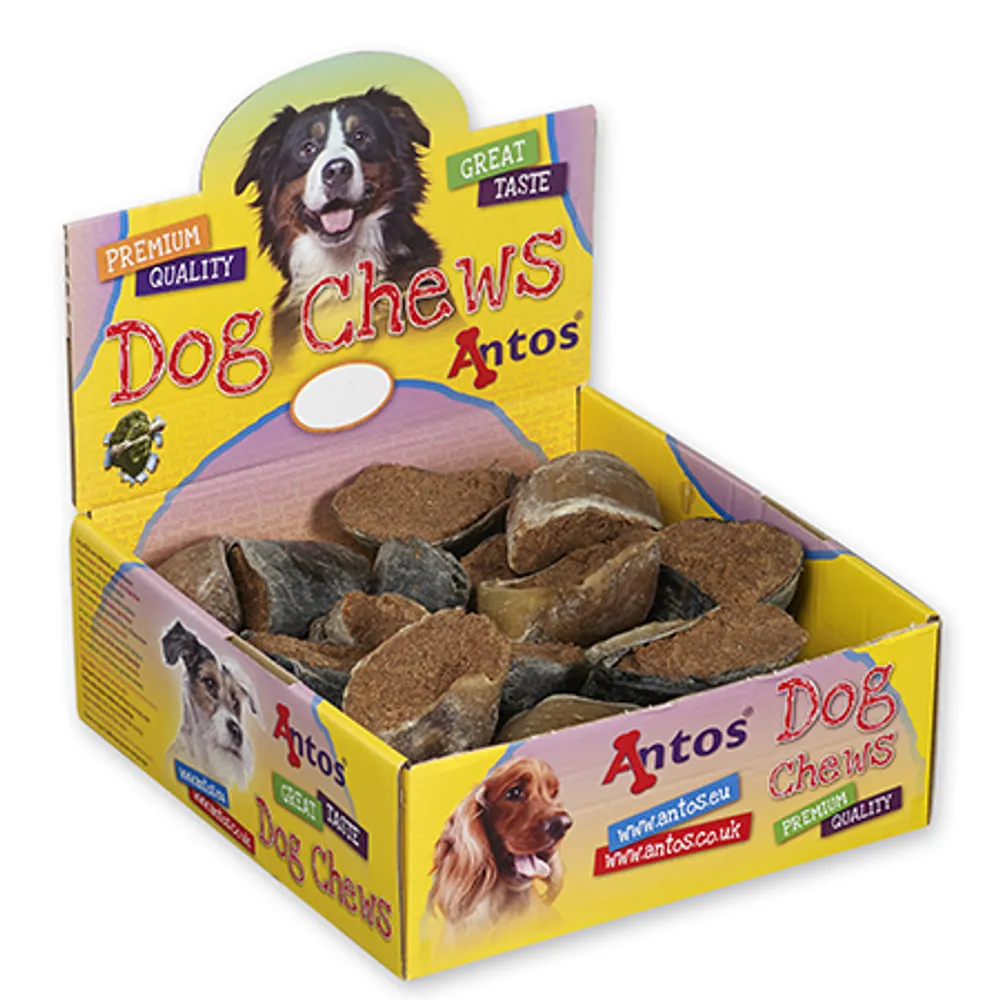 100 % SPANSK SERRANO-SKINKEBEN, naturligt behandlet for at bevare sine ernæringsmæssige egenskaber, med smagen og fordelene fra et 100 % naturligt produkt. Fordelene omfatter blandt andet tandhygiejne og naturlig kilde til calcium.