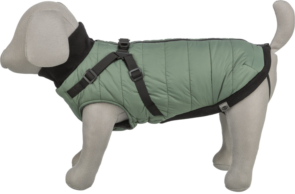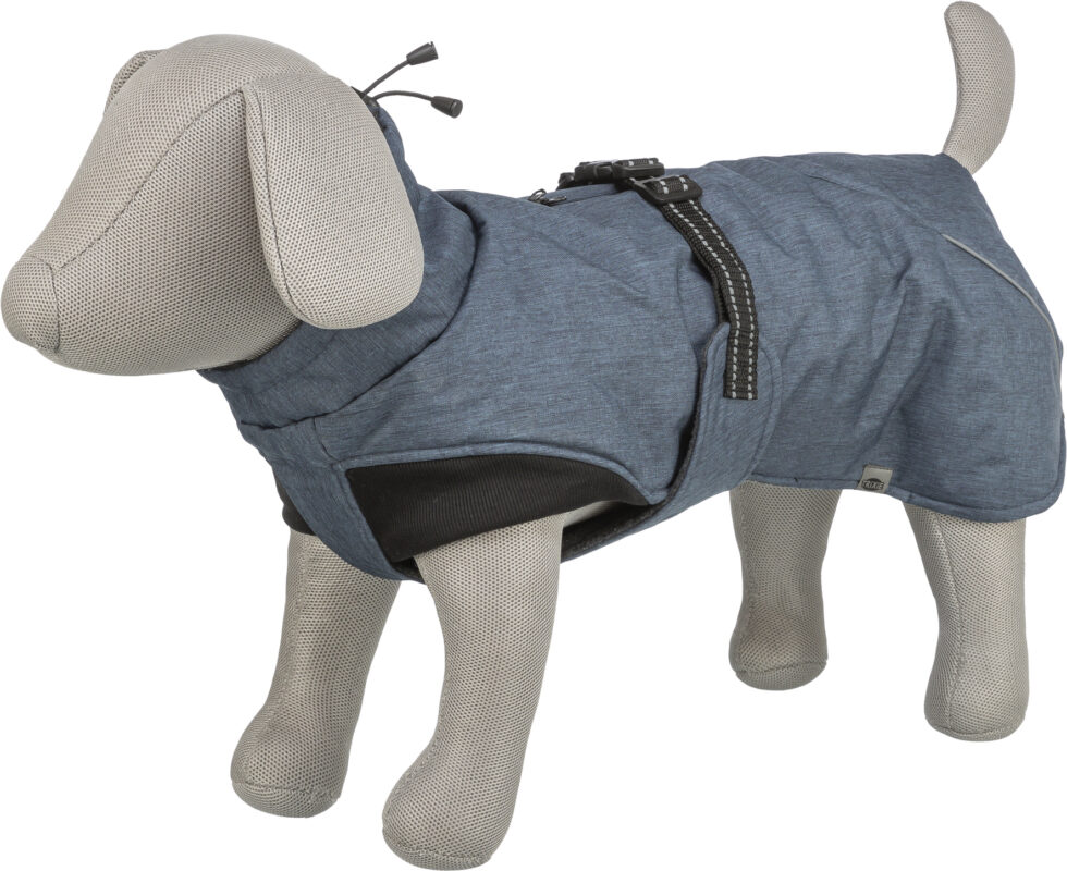 Vinterdækken med fleecefor og polstring (120g/m²) og med to vandtætte lynlåse til at kombinere med halsbånd eller sele.