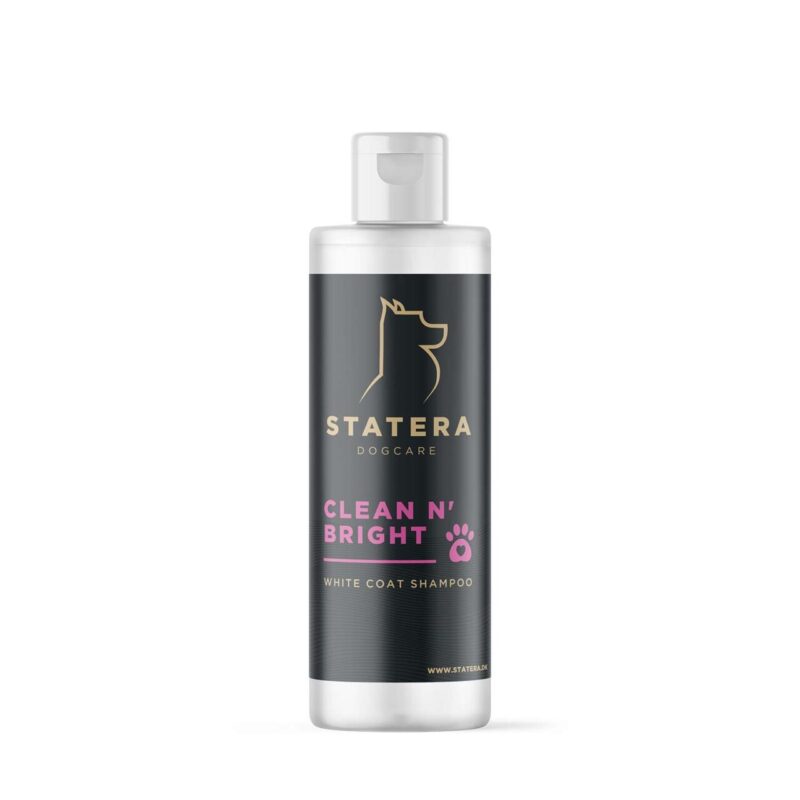 Plejende og effektiv shampoo, udviklet til hvid og lys pels. STATERA Clean n´ Bright, mindsker gulfarvning af hvid og lys pels og bidrager til lysere/klarere farver. Clean n´ Bright er med sine nøje udvalgte ingredienser og fokus på tilpasning til hundens naturlige pH-værdi i huden, et effektivt og skånsomt valg til hunden.