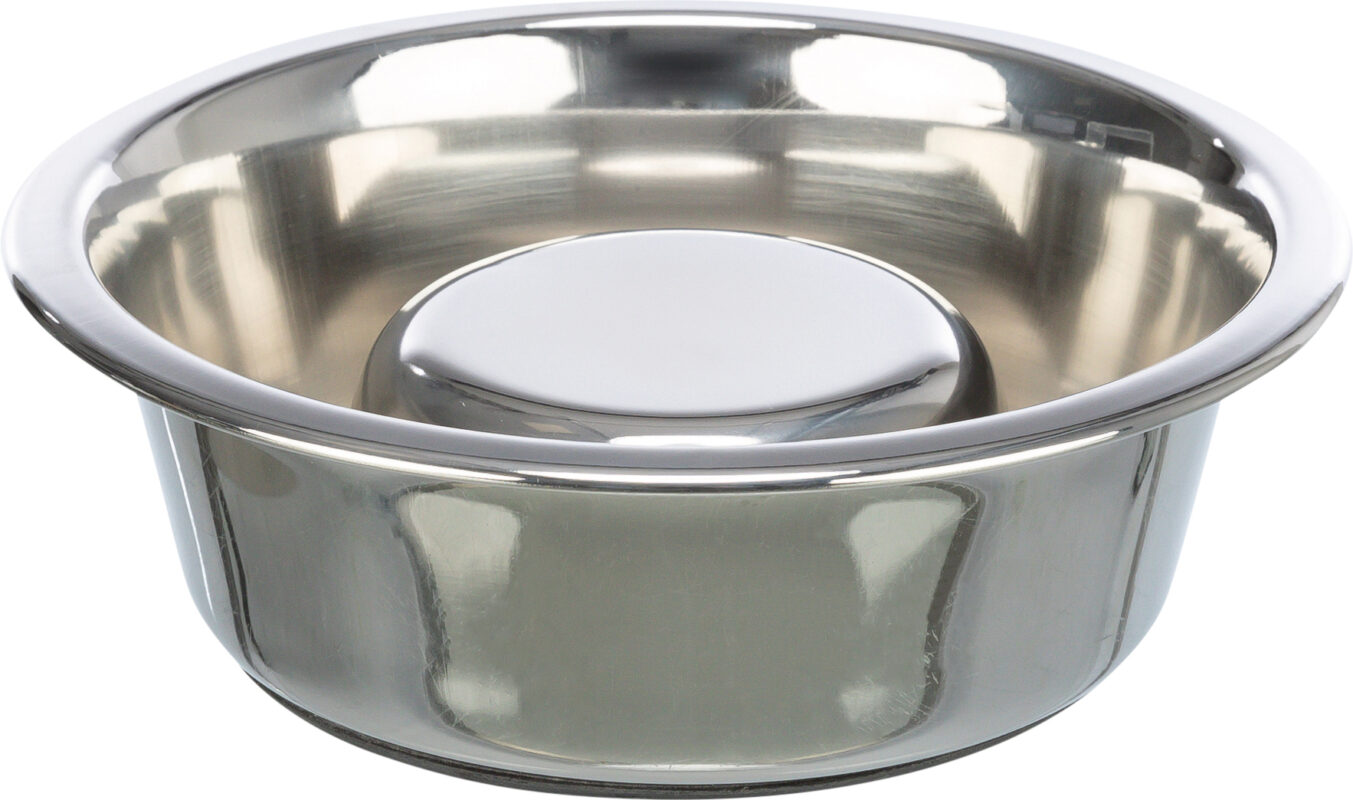 Denne Slow Feeding skål i rustfrit stål er designet specielt til at fremme en sund spiseadfærd hos hunde ved at regulere deres spisetempo. Skålen er konstrueret med en forhøjning i bunden, der gør det sværere for hunden at sluge maden i store klumper eller for hurtigt. Dette hjælper med at forhindre fordøjelsesproblemer som opkastning eller ubehag, da hunden bliver tvunget til at spise langsommere og mere kontrolleret. Den rustfrie stålskål er egnet til alle typer hundefoder, herunder tør- og vådfoder. Den er også udstyret med en skridsikker gummibundring, der holder skålen på plads under brug og forhindrer den i at glide eller skride på gulvet.